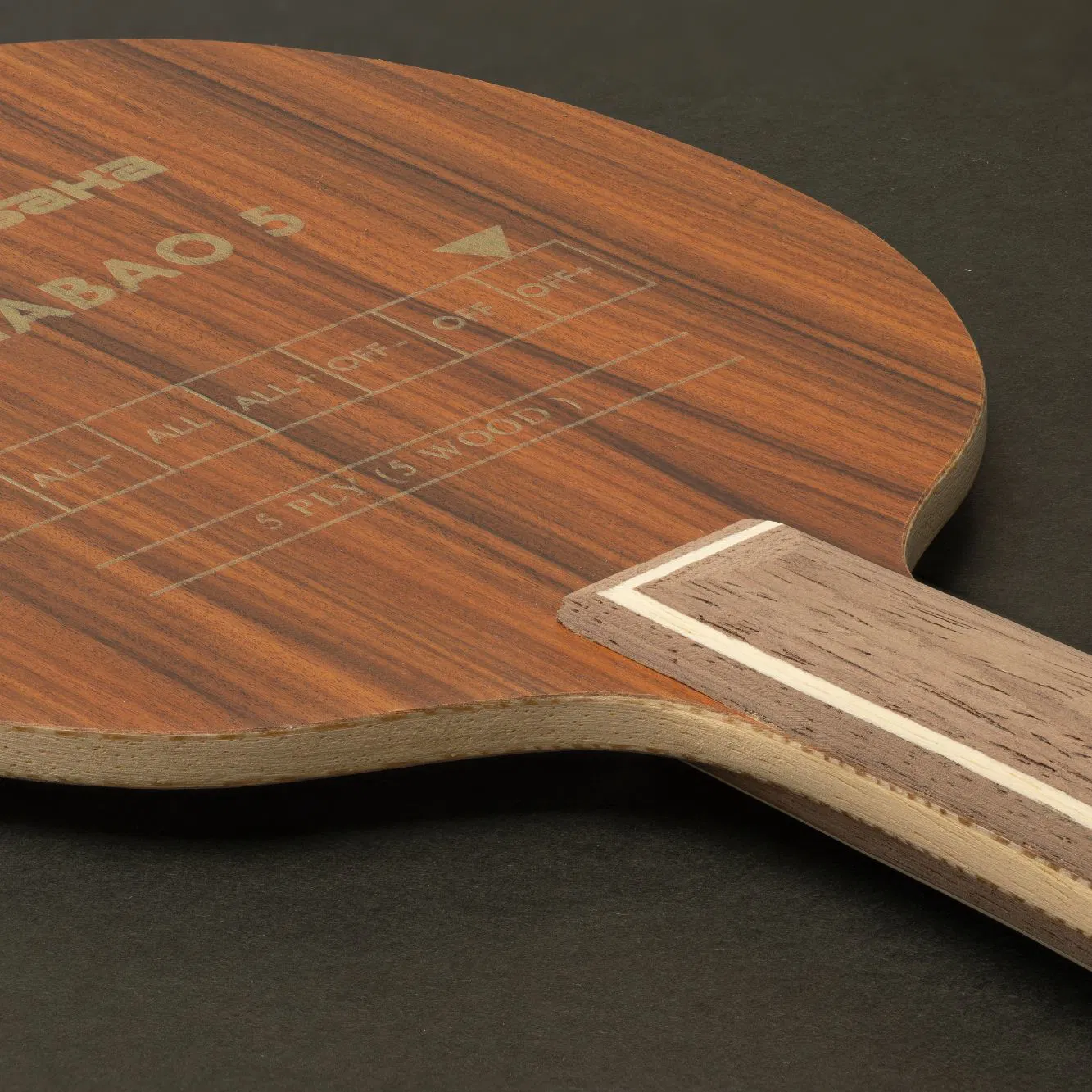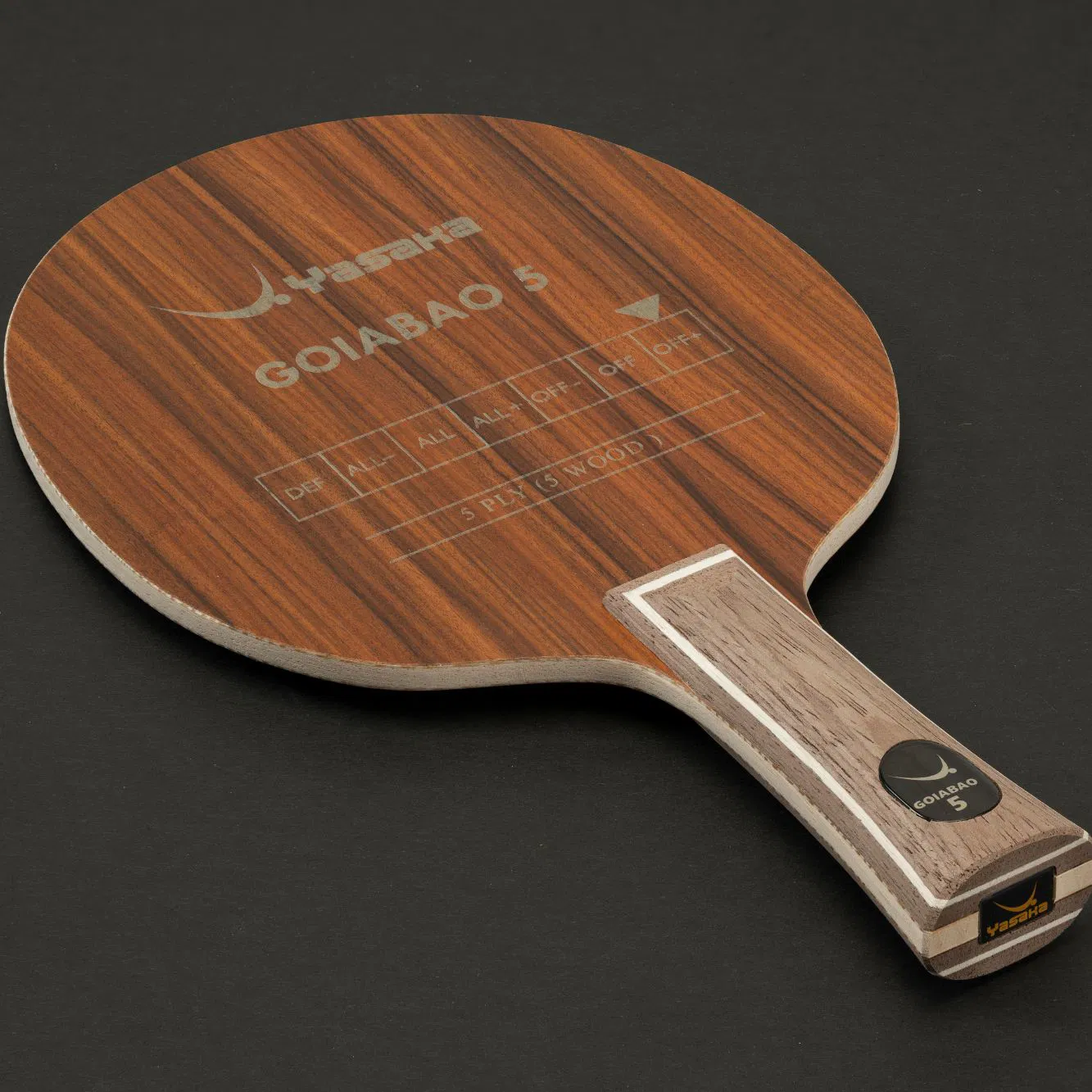 Goiabao 5 is designed for players who want an all-wood blade with a focus on power and control. Its 5-ply construction, featuring a hard outer veneer and a thick inner core, provides solid feedback during shots. The blade is fast and well-suited for offensive play, yet it retains some flex, allowing for excellent topspin loops and a medium throw angle.