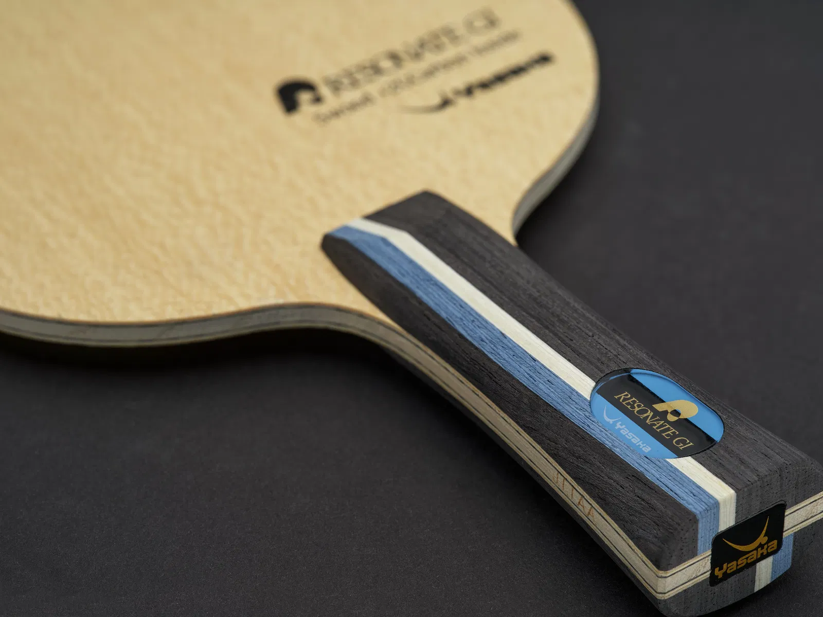 Resonate GI is built with an inner-carbon construction, meaning the G-Carbon (Glass Fiber Carbon) layers are placed between the core and the next layers rather than next to the surface. This placement enhances stability and precision while maintaining a softer feel than outer-carbon blades. The result is a blade that provides a solid ball touch with excellent feedback, helping players maintain consistency in aggressive play.