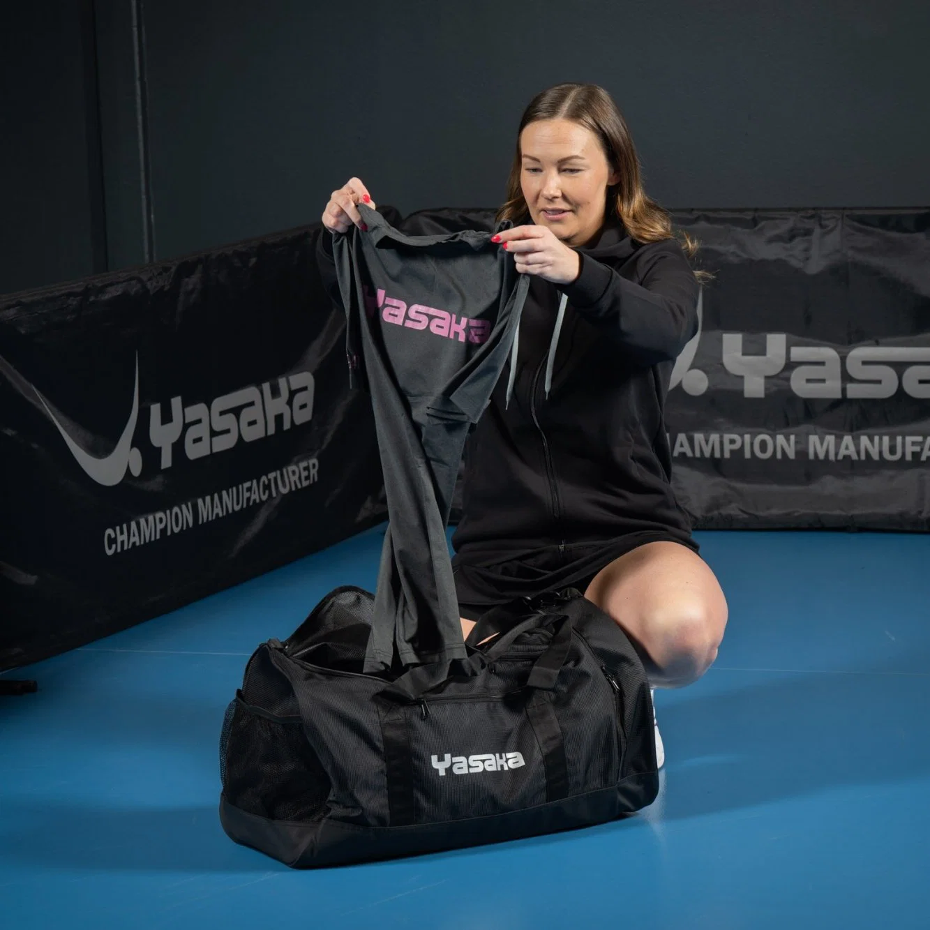 Benkei is designed for players seeking a reliable and roomy sports bag for training, matches, and travel. Measuring 53×30×30 cm, it offers a large main compartment for clothing, shoes, and equipment, along with practical side mesh pockets and a zippered outer pocket for smaller items.